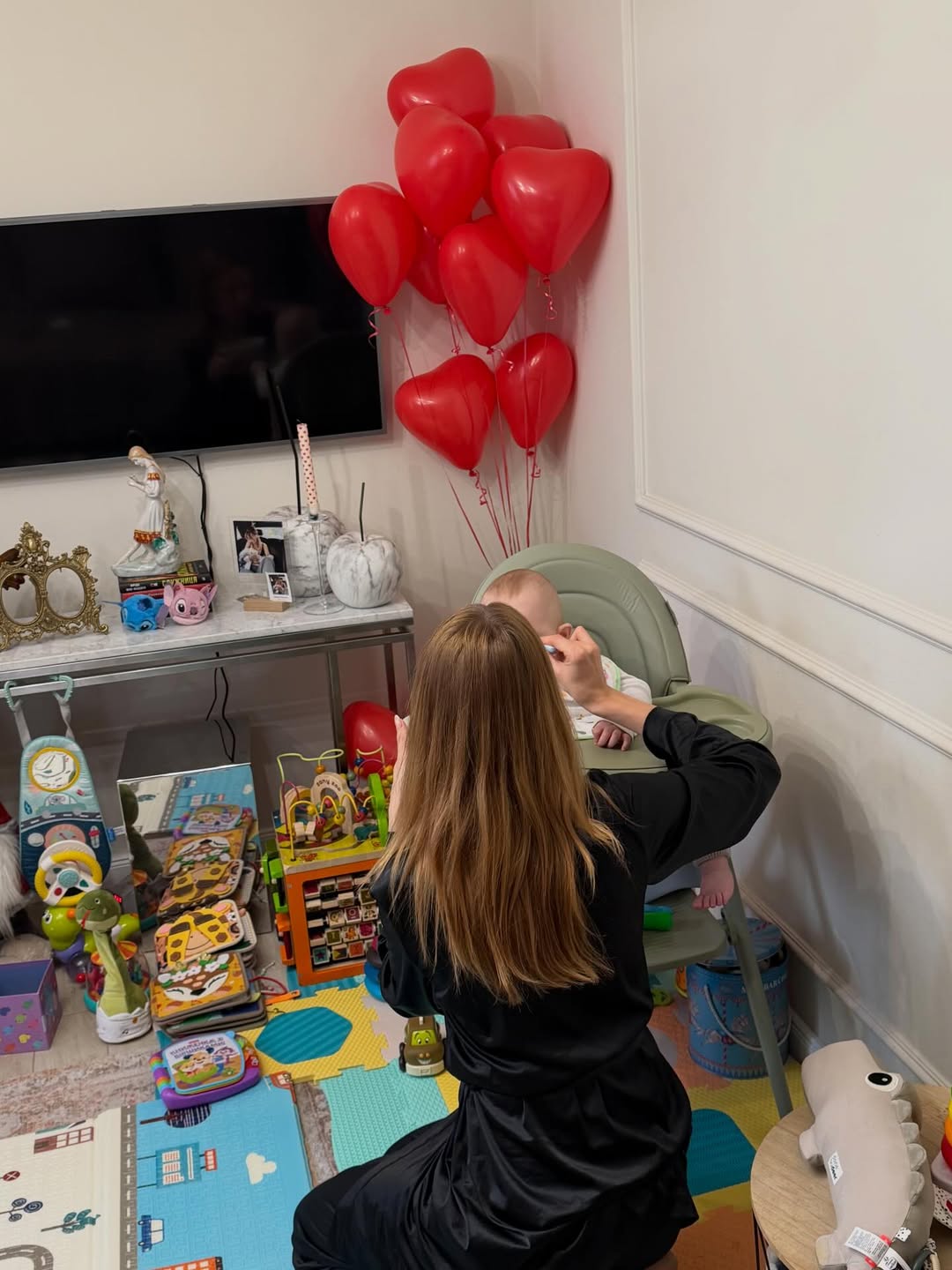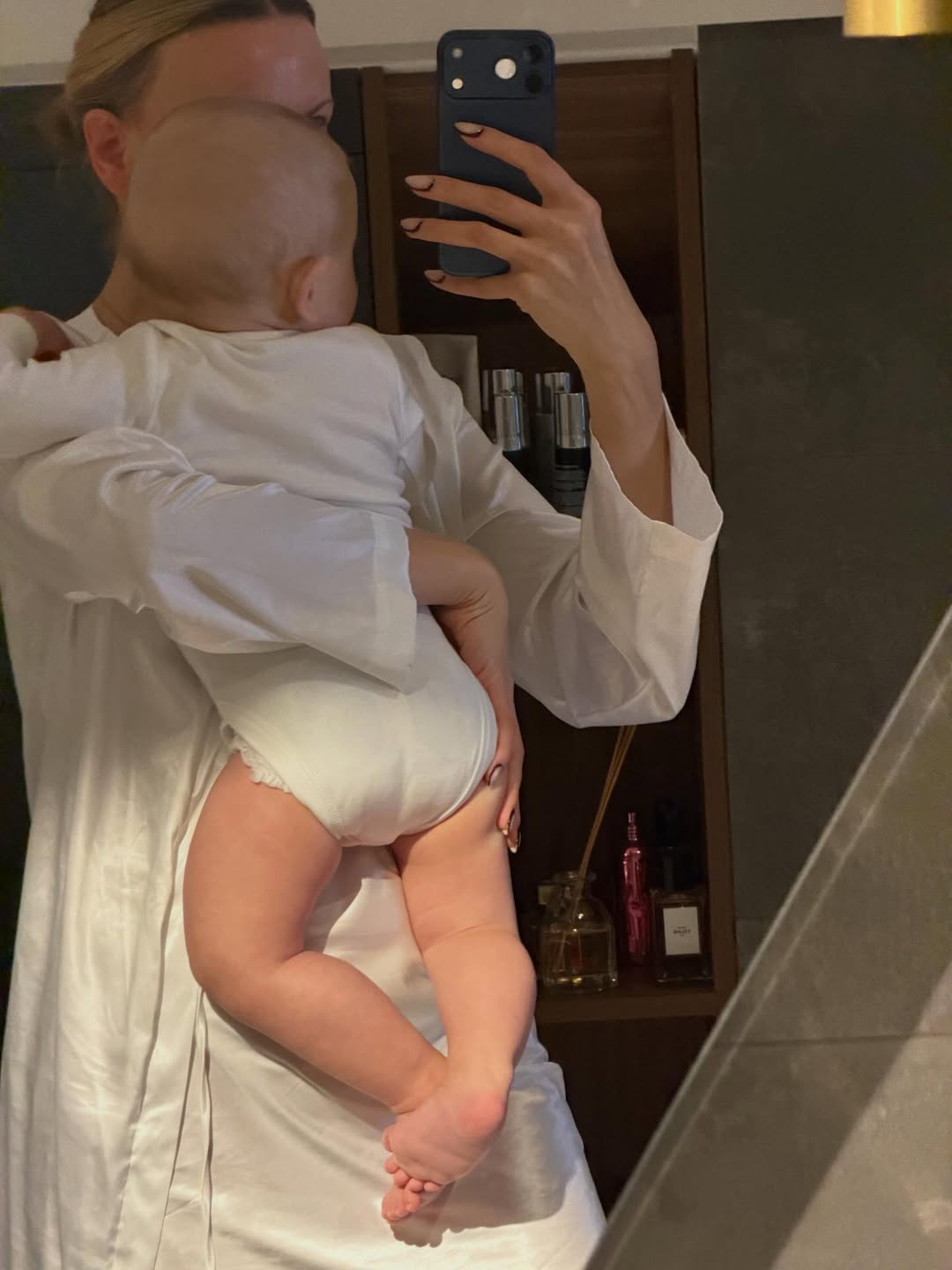 Леся також показала процес годування та ніжні обійми з сином перед дзеркалом. Ведуча надає перевагу комфортному домашньому одягу: шовковим піжамам та халатам у чорно-білій гамі.