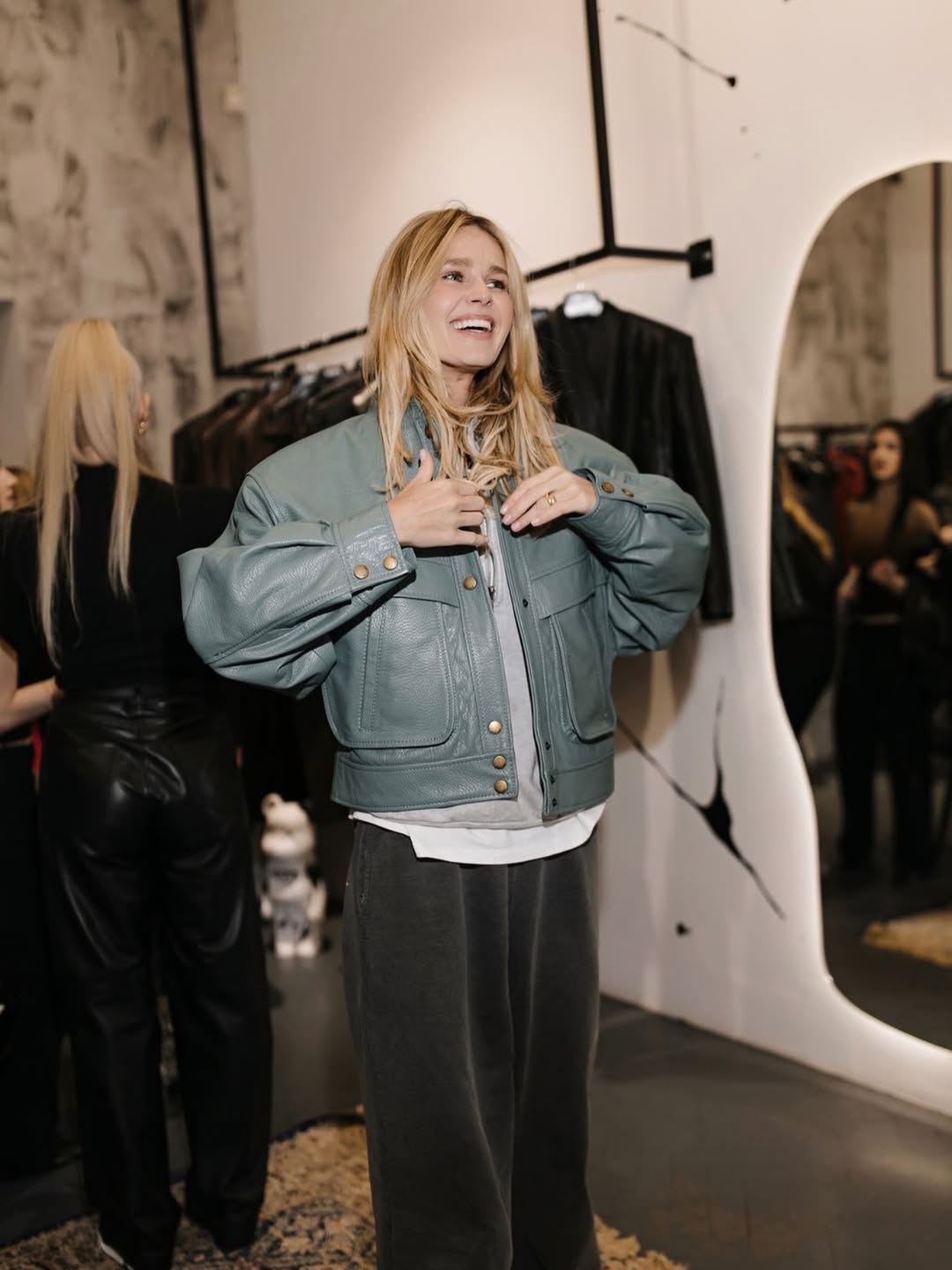 Кузнєцова показала модні куртки на весну (фото: instagram.com/katykino) Шкіряний бомбер у трендовому кольорі Третій образ - шкіряний бомбер у приглушеному зелено-блакитному відтінку. Такий колір є свіжою альтернативою класичному чорному і чудово вписується у весняну палітру. Модель має об’ємний силует, великі кишені та декоративні елементи у вигляді кнопок. Вона дозволяє створювати багатошарові образи, додаючи під низ світшоти або лонгсліви. Це універсальне рішення для тих, хто хоче виглядати сучасно, але не відмовлятися від практичності.